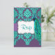 Placas RSVP de Aqua & Casamento tema damasco púrpu