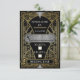 Placas RSVP de Casamento de Arte Negra e Prata Vintage — apresenta uma estrutura de gradiente dourado impressa com sotaques prateados brilhantes. O esquema de cores é ouro, prata e preto com um toque de branco (texto). Faça uma atualização do estoque básico de cartões para algo brilhante para trazer o brilho nestes convites de arte nouveau projetados. Você pode fazer isso com a direita acima. Cada RSVP vem com um envelope branco equipado. Veja o convite de casamento abaixo. Este design também está disponível com ouro brilhante em vez de sotaques prateados.