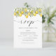 Explore o romance clássico com nossos cartões de resposta RSVP projetados para casamentos costeiros botânicos mediterrânicos italianos ou Grécias. Adorado com um galho de limão espantoso. A escrita de caligrafia minimalista negra acrescenta um toque de sofisticação à design.