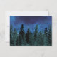 Cartões RSVP de Casamento Russo de Pinheiros com Aquarelas - apresentam um céu noturno estrelado com cor d'água com pinheiros eververdes em vários tons de verde com um layout de texto elegante. Consulte produtos correspondentes na coleção encontrada nesta página.