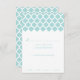 Simples e elegante, estas placas RSVP de Festa de casamento de padrão marroquino azuis adicionam a quantidade certa de estilo e cor ao seu tema de casamento. Personalize o texto para ajustado das necessidades do seu partido.