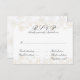 Cartões RSVP de Natal com design de flocos de neve dourados e modelo de menu. Os cartões brancos são decorados para a temporada de festas/casamento de festas e têm flocos de neve na frente e atrás. A fonte de script elegante é fácil de personalizar para incluir até três entrenes com uma linha que solicita o número de visitantes. Use para casamentos ou festas de Natal/comemorações.