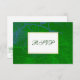 Um modelo de cartão RSVP de fim de inverno editável com um padrão elegante de pínus boughs e pinecones em verde e azul sobre um fundo de verde. Personalize-o para alterar fontes ou cores, tamanhos e até salvar seu design para mais tarde.