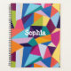 Este planejador personalizado apresenta um abstrato, design de formas geométricas, preto e colorido. Personalize seu design, adicionando facilmente um nome, representado em branco.