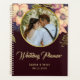 Livro de planejamento de casamento rústico e elegante, com foto e flores de água rosa-bege em tons de borgonha.