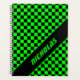 impressão de planejador personalizado legal com padrão de verificação preto e verde néon clássico e nome personalizado em fundo preto. Pode ser personalizado adicionando seu nome ou outro texto e alterando o estilo da fonte, o tamanho da fonte e a cor da fonte. Perfeito para registro de marcadores, agendamento, gerenciamento de contatos ou para manter um registro de suas reuniões e aniversários de seus amigos e familiares.