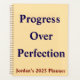 Priorize o progresso com este planejador elegante de "Progresso em Perfeição". Apresenta texto editável para que você possa personalizá-lo para si mesmo ou para um amigo. Ideal para estudantes, criativos e empreendedores.