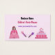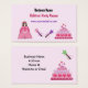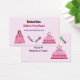 Uma cartão de visita para mostrar sua empresa festa de aniversário. Uma princesa de cor rosa e um bolo de camada bonito com velas estelares e designs coloridos. Duas varas mágicas em rosa e roxo. Fonte rosa e roxa em um fundo rosa suave. Excelente de festas "princesa". Personalize com todas as suas próprias informações conforme desejado.