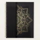 Planeador mensal minimalista negro e Dourado com mandala no cobrir.