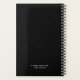 Simples e mínimo em sua estética, esse planejador personalizado negro se sente limpo e organizado com seus gráficos poupados em preto e branco fresco. O texto personalizado permite controlar o rótulo, adicionar um ano, um nome, um assunto escolar e até mesmo informações de contato se o seu notebook for perdido.