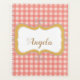 O design do planejador Chic do País apresenta fundo de gingham rosa com etiqueta frontal. Personalize com seu nome ou citação favorita.