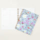 Arte floral em azul, planejador pessoal tamanho grande 21,5 x 28 cm (ou escolha 20x13 cm). Um lindo padrão de flores em rosa, azul, laranja e branco, com folhagens, cobre a frente e a parte de trás, é um design único, ilustrado à mão. Um efeito de sombra leve faz com que as flores e folhas pareçam "saltar" da capa. Adicione texto no centro com um nome pessoal, nome da família, empresa ou outro. Escolha um estilo de capa dura ou macia. Registre as datas e mantenha tudo organizado, com planos diários, semanais ou mensais e compromissos de fácil acesso.