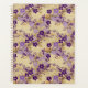 Belo planejador de padrões chiiogami com flores roxas em fundo dourado. Personalize o nome e o ano do planejador no cobrir traseiro. Planners fazem presentes de Natal ou excelente.