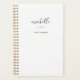 Planejador semanal mensal moderno. Nome personalizado em letra cursiva e floreio decorativo em fundo branco. Ideal para casamento, negócios, profissional, pessoal, anotações no chá de noiva e planejamento de metas. Sem data, comece a qualquer momento.