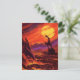 Ilustração vintage de planetas futurísticos de ficção científica e imagem do espaço sideral. Um design de livro de histórias em quadrinhos de ficção científica retrô dos anos 50 com um planeta vermelho-fogo coberto de lava derretida quente proveniente de vulcões em erupção do futuro. Um sol amarelo brilhante está no céu vermelho.
