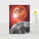 Placa de saudação cósmica de planeta vermelho vibrante e lua, apresentando uma exploração de palavras imbatível e personalizável.