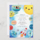 Prepare-se para um primeiro aniversário deste mundo! Esse sistema solar super fofo apresenta um sol sorridente, Mercúrio, Vênus, Terra (com a lua), Marte, Júpiter, Saturno, Urano e um foguete que explode no espaço. O texto editável inclui "1rua à volta do Sol". A nave de foguetes pode ser personalizada com a idade do seu próprio astronauta. Estrelas cintilantes contra uma galáxia azul profunda nas costas.