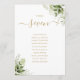 Esses elegantes números de mesa de casamento com folhas botânicas verdes podem ser personalizados com o plano de assento dos seus convidados definido em tipografia dourada chique. Os cartões são impressos na frente e no verso (frente e verso). Criado por Thisisnotme©