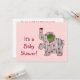 Personalize acrescentando o nome do bebê a este belo convite de chá de fraldas, estilo country, com uma imagem de uma colcha como um padrão floral, elefante rosa com orelhas verdes. Conjuntos de festas de bebês e guardas personalizadas do tema correspondente disponíveis no PhotoographicTKDesign.