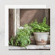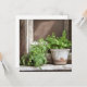 Placa de vazio. Plantas bonito sentadas em uma janela de madeira rústica deixam a arte ai.