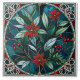 Um azulejo decorativo de cerâmica com design de Natal de folhas sazonais, flores vermelhas e bagas, com um falso efeito embaçado metálico. Com o charme botânico inspirado no artesanato do vidro tradicional manchado, esse azulejo faz um delicioso presente festivo.