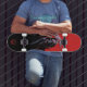 O Ceifador e o scythe com a plataforma vermelha do skate do fundo por Morgan projetam uma pintura airbrushed agora um design em uma plataforma do skate.
