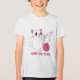 A cute white kitten having fun with a pink yarn ball- a joyful and lighthearted design for cat lovers of all ages.