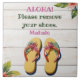 "aloha hawaiian style sign", "plese remove your shoes", "flip flop sandal shoe", "floral flower flipflops flops", "hawaii plaque entrance request", "hot pink green cream white", "faux wood wooden planks", "clean entranceway welcome", "ocean sea beach house", "home cleanliness respectful respect"