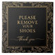 "please remove your shoes", "elegant classic black gold" "modern botanical floral", "classy thank you message", "fancy plaque entrance request", "luxury establishment thanks", "removing shoe before entry", "clean entranceway welcome", "stylish contemporary house", "home take off footwear"