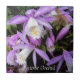 Para fãs duros de orquídeas! Azulejo cerâmico com imagem fotográfica de flores roxas e brancas Pleione Orchid, também conhecidas como Orquídeas do Windows. Um design floral adorável! Selecione o tamanho do seu azulejo. Faz uma trivet de cozinha excelente!