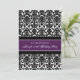 Personalizar 60º Convites de aniversário em elegante berinjela roxa escura, preto e branco clássico cor damasco floral. Adicione seu nome e detalhes da festa para um convite de aniversário exclusivo e na moda 60º.