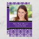 Festa de formatura de cartão com fotos personalizada em elegante e sofisticado roxo escuro, preto e branco, cor damasco floral moderna. Personalize este cartão com fotos de formando adicionando o ano de sua graduação, sua própria foto e seus detalhes de festa de formatura.