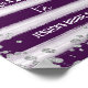 Poster impressão para sinal de boas-vindas com design de cintilação prateada falsa e fundo de listras roxas de ameixa.