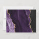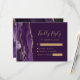 A borda esquerda deste elegante cartão de cercado RSVP de casamento moderno apresenta uma borda de agitação de cor d'água roxa, aparada com falso brilho dourado. O título "Resposta gentil" aparece no script de escrita manual, com texto personalizável abaixo na fonte de impressão colorida dourada num fundo de ameixa rico. O verso apresenta um design de agate roxo e dourado correspondente.
