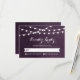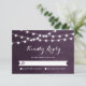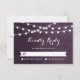 Design de placa de resposta RSVP de casamento moderno de verão com simples luzes de cordas brilhantes e elegantes penduradas no topo e uma mistura elegante de fontes modernas e caligráficas em um fundo de textura faux color. Um design de pré-disquete simples e na moda, perfeito para o verão! Clique no botão PERSONALIZAR TI para personalizar fontes, mover texto e criar seu próprio design de convite exclusivo.