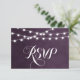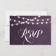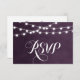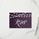 Design de placa de resposta RSVP de casamento moderno de verão com simples luzes de cordas brilhantes e elegantes penduradas no topo e uma mistura elegante de fontes modernas e caligráficas em um fundo de textura faux color. Um design de pré-disquete simples e na moda, perfeito para o verão! Clique no botão PERSONALIZAR TI para personalizar fontes, mover texto e criar seu próprio design de convite exclusivo.