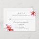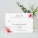 Flores de plumeria rosa respondem cartas com seleções de entradas de casamento. Os cartões brancos têm flores havaianas nos cantos. Incluir até três itens de menu e uma opção para recusar a frequência. O reverso é branco.