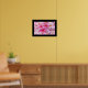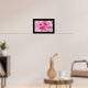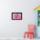 Poster mostrada com um impressão fotográfico de bonito flores tropicais cor-de-rosa em fundo poster Negro. Personalize este item ou comprar como está. Foto de ações