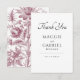 Para uma celebração romântica, este estilo de casamento atemporal apresenta um design botânico floral inspirado na toile francesa rosa empoeirada, criando uma estética graciosa e refinada. Uma tipografia serifada elegante, contrastada com um tipo de letra script, adiciona um toque de sofisticação clássica, tornando este agradecimento de casamento perfeito para casamentos em jardins, eventos inspirados no vintage ou qualquer ocasião romântica. Este design é adequado para um casamento de estilo royalcore ou grandmillenial, ou botânico vintage.