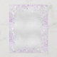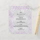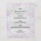 Um cartão de cardápio de casamento elegante e glamouroso. Personalize e adicione seus nomes, data e menu de casamento. Fundo metálico de aspecto fino prateado, decorado com poeira de brilho púrpura.