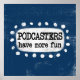 "Podcasters Have More Fun" é um design de texto giro com uma forma de sotaque branca rodeada por pontos brancos.