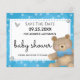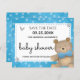 Chá de fraldas de trabalho de arte de ursinho bonitinho, de cor digital e desenhado à mão, para salvar a data do convite design. Elementos pintados por Valarie Wade. Perfeito para qualquer momento do ano. Texto ajustável. Urso de pelúcia bolinhas azul é um chá de fraldas chamado "menino". Clássico