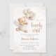 🐻 Convite para Chás de fraldas de Espera - Balões Marrons e Tema do Urso de Teddy Comemoram a chegada do seu pequeno com este adorável convite para o chá de fraldas "Nós podemos esperar muito cedo"! Apresentando um doce ursinho d'água flutuando com balões marrons, cercado por nuvens macios, esta design é perfeita para um chá infantil ou uma festa temática do céu neutra do ponto de vista do gênero.