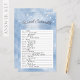 Este ursinho que podemos esperar, o Pastel Blue Word Scramble Game fará com que seus convidados chás de fraldas gritem de ouvido a ouvido. O design bonitinho com um urso sonhador flutuando em nuvens azuis de aquarela é perfeito para qualquer bebê a ser. Este jogo é tão fácil de jogar - apenas desembaraçar as palavras relacionadas ao bebê na folha. Com certeza todos se misturando e rindo juntos. A mãe que será adorará ver seus entes queridos se divertindo no seu chá!