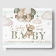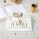 Celebre a chegada do seu pequeno com o nosso Livro de Convidados do Chá de fraldas "Podemos Esperar"! Este design delicioso apresenta um adorável urso marrom adorado com um arco verde charmoso, segurando balões castanhos e verdes. A cena é colocada contra um cenário sonhador de nuvens peludas e estrelas cintilantes, fazer este livro de hóspedes com um olhar brilhante e animador. Perfeito para capturar mensagens e memórias doces do seu dia especial! BBS390