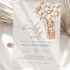 Podemos Esperar! :) Este ursinho está esperando a grande festa do bebê, sentado em um balão de ar quente construído com balões marrom e creme. As aquarelas brancas e a tipografia moderna complementam a design. Personalize este belo convite para Chá de fraldas do Urso com os detalhes do seu chá de fraldas de forma fácil e rápida, pressione o botão personalizá-lo para reorganizar e formate o estilo e o posicionamento do texto.