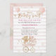 Convide amigos e família para comemorar sua filhinha com este adorável convite de chá de fraldas "Nós podemos esperar muito cedo". Apresentando uma ilustração de ursinho doce e tons rosa macios, é perfeito para uma celebração quente e elegante.