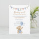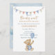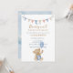Celebre a chegada do seu filho com este doce convite de chá de fraldas "Nós podemos esperar muito cedo". Apresentando um ursinho de pelúcia fofinho em um cavalo balançante e sotaques azuis suaves, é perfeito para uma encantadora e encantadora celebração.