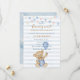 Convide os entes queridos para comemorar o seu bebê com este adorável convite para chás de fraldas "Podemos Esperar Mais Cedo". Apresentando um doce ursinho em um cavalo balançante e tons azuis suaves, é perfeito para um chá de fraldas aconchegante e elegante.