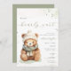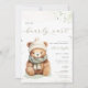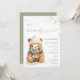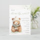 Esta design apresenta um ursinho de pelúcia giro em um sutil bege texturizado e escondido fundo. Paleta de cores: verde-sábio, bege e marfim. Este convite de chá de fraldas temático "Podemos esperar" é perfeito para o inverno.